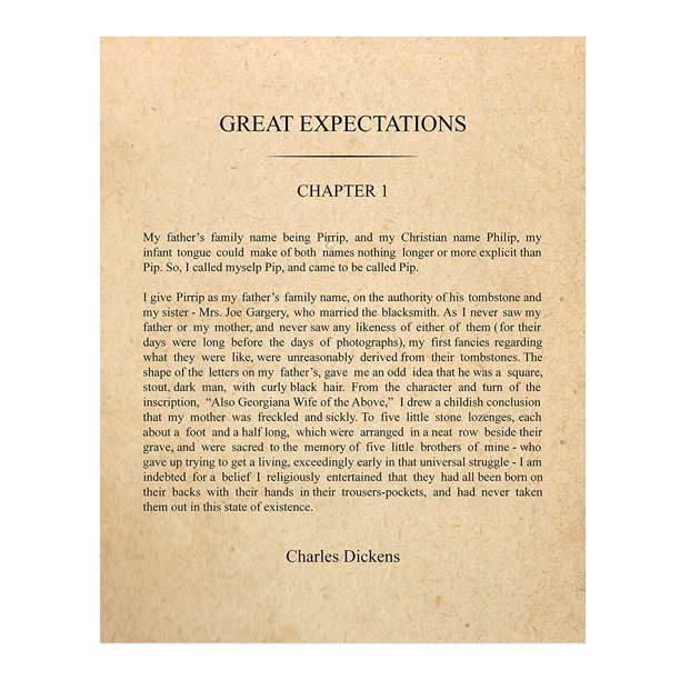 Charles Dickens Great Expectations Chapter 1 Book Page Print 11 X 14 Literary Wall Art Quotes W Replica Distressed Parchment Design Ready To Frame Inspirational Home Office Library Decor Walmart Com