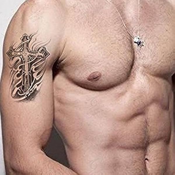 Sanerlian Waterproof Temporary Fake Tattoo Stickers Vintage Grey Cross God Pray Set Of 2 Beauty Personal Care Amazon Com